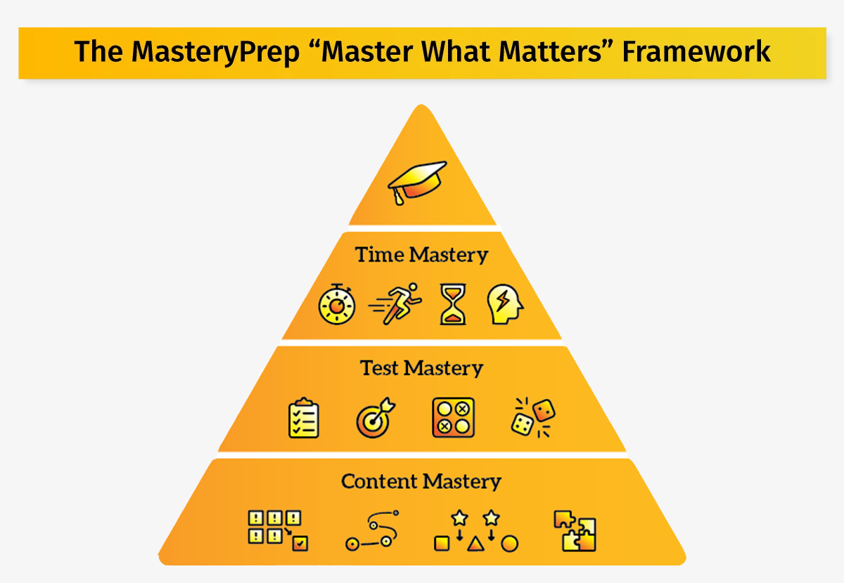 We designed our curriculum and end-to-end solutions around the Master What Matters framework, which focuses on three key areas: Content Mastery (70%), Test Mastery (20%), and Time Mastery (10%).